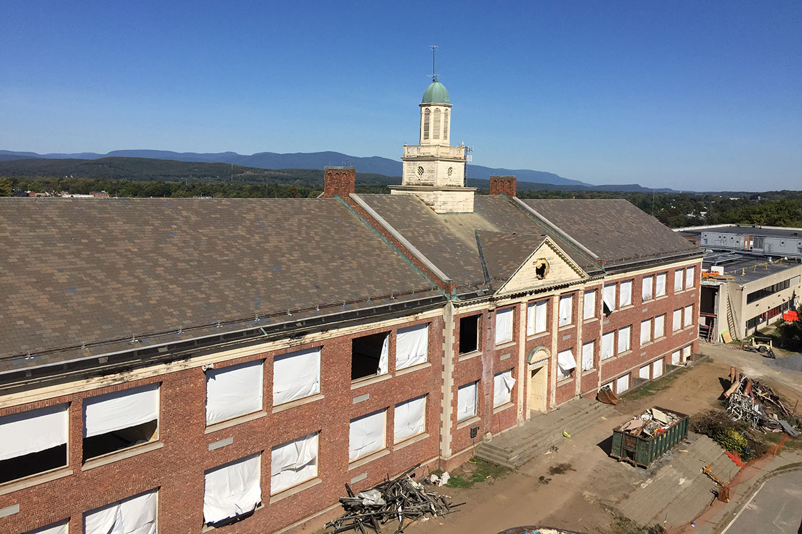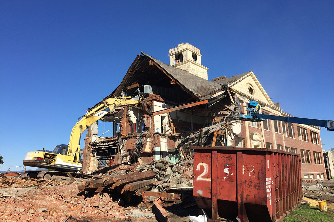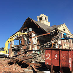 - Salvage of the historic components (dome cupola, lettering, stone)